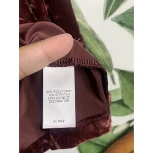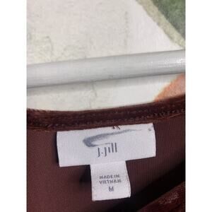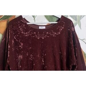 J Jill Medium Velvet Burgundy Embroidered Neckline Short Sleeve Blouse