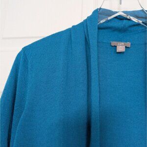 J Jill Merino Wool Open Cardigan Petite Size Medium Blue Lightweight Sweater