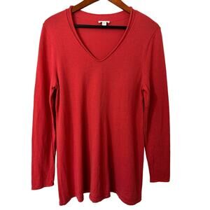J. Jill Merino Wool Red Long Sleeve V-Neck Blouse Size Medium