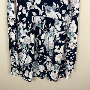 J. Jill Midi Dress PM Navy Blue Floral Shift Ruffle High Low Hem Petite Medium