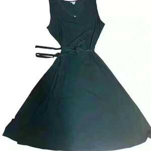 J Jill Midi Sleeveless V Neck Tie Waist Size L. Black. Casual Spring