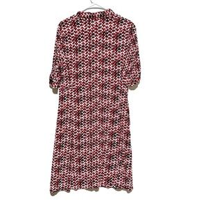 J. Jill Midi Womens Mod Print Navy Red Shirt Dress Size 12 Tab Sleeves Collared