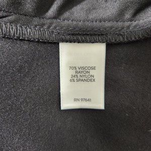 * 70% Rayon 24% Nylon 6% Spandex. Machine wash cold.