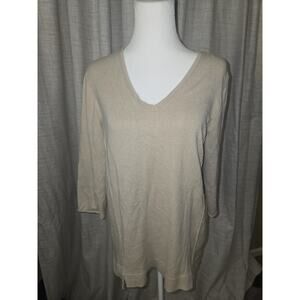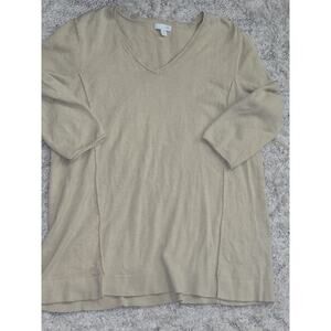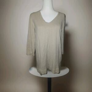 J Jill Missy Sz Medium Tan 1/2 Sleeve Top V Neck Knit Texture Cotton Blend