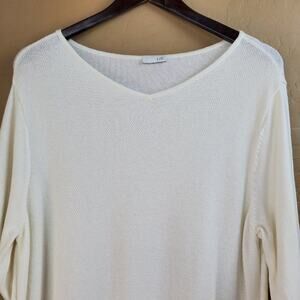 J. Jill mixed knit tunic sweater. 3/4 sleeves. High-low hem. See measurements for sizing as size tag has been removed; this may fit like a large.