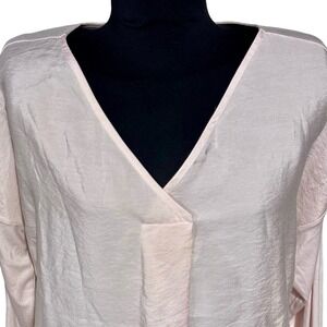 J. Jill Mixed-Media Relaxed V-Neck Blouse in Blush, size Medium