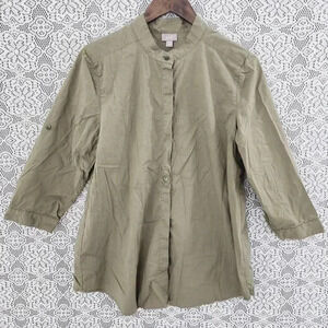 J. Jill Mock Neck Button Up Green Women's Shirt M