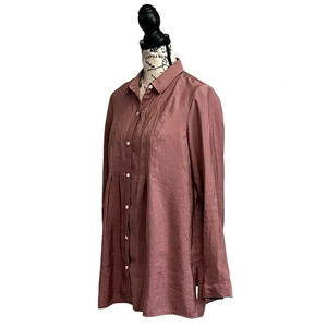 J Jill Modal Pleated Button Up Tunic Blouse Relaxed Modest Mature Pink Womens XS