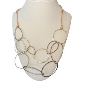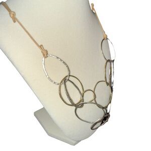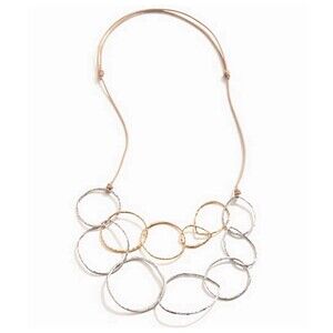 J. Jill, J Jill, modern rings necklace, hammered rings necklace, hammered necklace, silver gold necklace, mixed metal necklace, statement necklace, boho necklace, bohemian necklace, artisan necklace, adjustable cord necklace, cord necklace, layered necklace, fashion jewelry, hammered silver necklace, hammered gold necklace, round rings necklace, circle necklace, geometric necklace, everyday necklace, casual necklace, lightweight necklace, long necklace, adjustable necklace, J. Jill jewelry, J Jill jewelry, trendy necklace, modern necklace, women’s necklace, gift for her