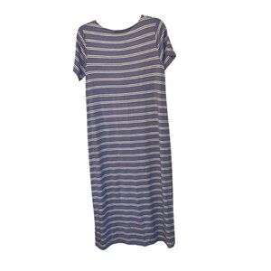 J. Jill Multi Directional Stripe Short Sleeve Maxi Dress 1X Summer Sheath NWT. This maxi dress is made of 95% Rayon 5% Spandex. It measures Underarm to Underarm and Hip to Hip 21", Length 52". This dress is NEW WITH TAGS and has never been worn or used. Ships from a Smoke Free Home. Any questions, please ask. All reasonable offers welcome.