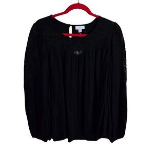 J. Jill NWT Black Lace Detail Pullover Top Balloon Lace Detail Sleeve Size M