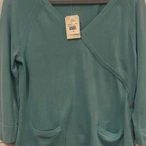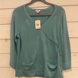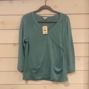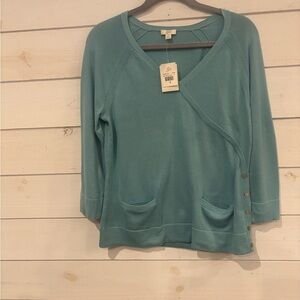 J. Jill NWT Enamel Blue top with Button Details in size small 100% cotton