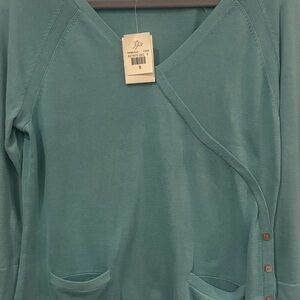 J Jill NWT Enamel Blue top with button details. The top is in a beautiful blue/green color palette. Ideal for casual or dressy occasions.
