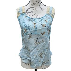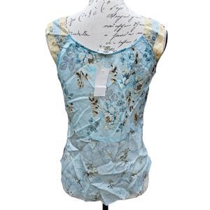 J. Jill NWT Whimsical Sleeveless Light Blue Floral Semi Sheer Blouse Size Small