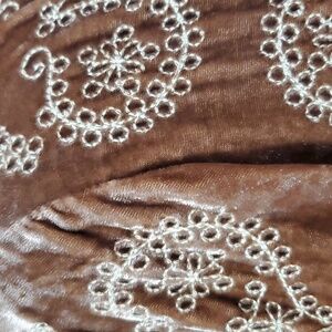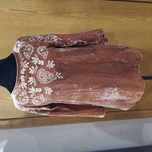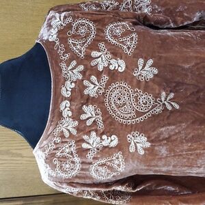 J Jill NWT velvet embroidered top tan champagne color