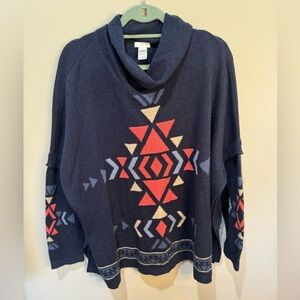J Jill Navy Aztec Southwestern Navajo Oversized Sweater Cowl Neck Sz Large