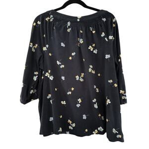 J. Jill Navy Blue Cotton Blend 3/4 Sleeve Peasant Keyhole Boho Top XL