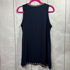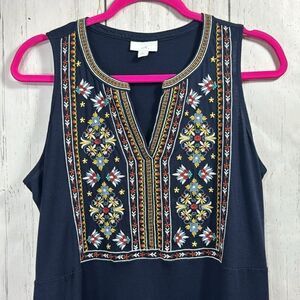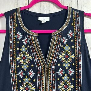 J Jill Navy Blue Embroidered Boho Sleeveless Cotton Blend Summer Casual Top
