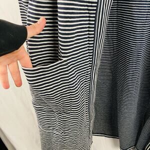 J. Jill Navy Blue & White Striped Long Open Cardigan Small Classic Minimal NWT