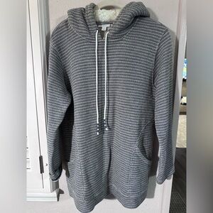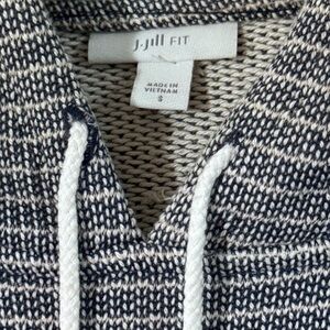 J. Jill Navy Blue and White Striped Hoodie Sweatshirt