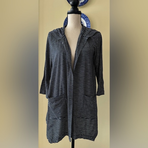 NWT! Navy & white striped open-front lightweight hoodie. Cotton blend. Pockets at front. Perfect as a beach, cover-up or to bring along on a chilly spring night.