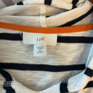 Stylish striped hoodie. Features drawstring hood. Comfortable and casual.