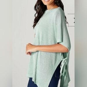J.Jill OS Sweater Poncho Green Pistachio Open Side Lightweight Shortsleeves Oversize Women's LINEN Blend