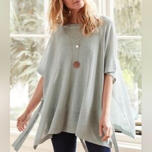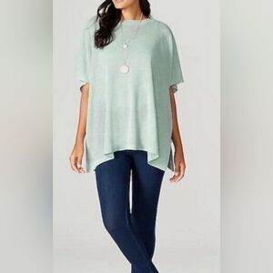 J Jill OS Sweater Poncho GreenPistachioOpenSide LightweightOversize Women LINEN