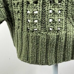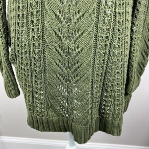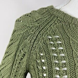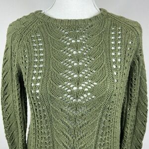 J Jill Olive Green Cable Knit Tunic Sweater Sz XS Pointelle Knit Raglan