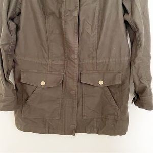 J Jill Olive Green Cotton Utility Military Field Jacket Size XS Zip Up Pockets