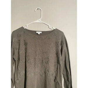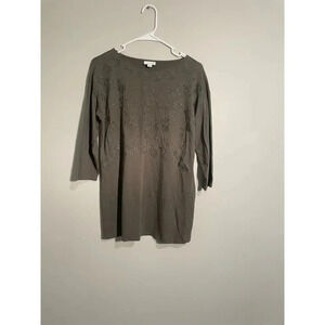 J. Jill Olive Green Floral Embroidered Tunic Top Modal Blend