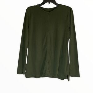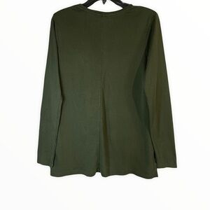 J. Jill Olive Green Pima Cotton Crew Neck High Low Shirt Size Medium