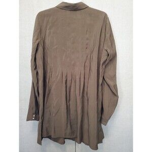 J Jill Olive Green Tencel Blend Pleated Long Sleeve Button-Up Tunic Size XL Tall