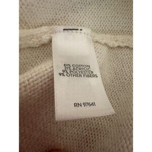 * The sweater is a size Medium Petite and has a mock neck with a pullover style.