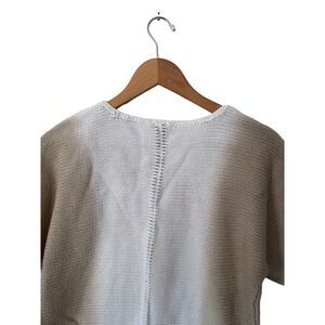 J. Jill Ombre Open Knit Tan White Short Sleeve Sweater Blouse Size M Cozy Fall Chic Minimalist Capsule
