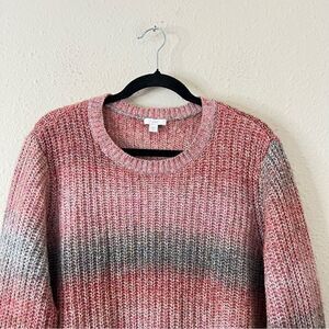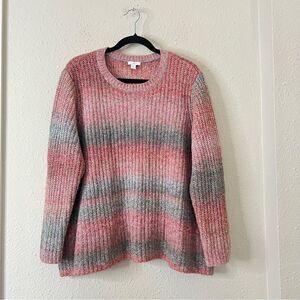 J. Jill Ombre Stripe Crewneck Sweater Wool Blend Size XL Petite Pink Gray Chunky