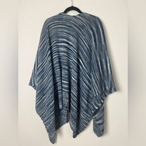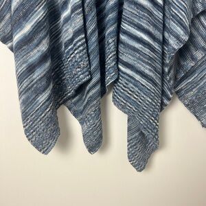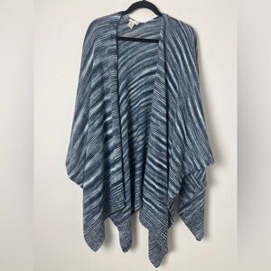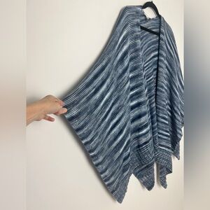 J. Jill One Size Blue Ombre Gradient Knit Open Poncho Ruana Wrap Coastal Boho