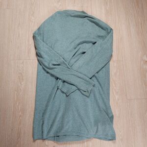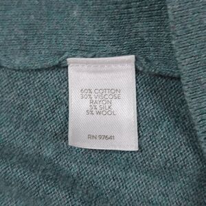 J Jill Open Cardigan Sweater L Green Cotton Blend Wool Silk Blend Pockets Soft