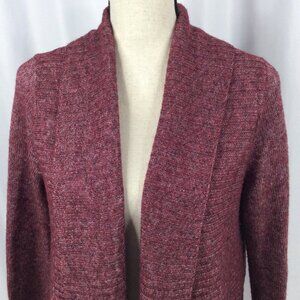 J Jill Open Cardigan Sweater Womens Size Medium Red Poly Wool Blend Waterfall