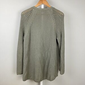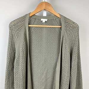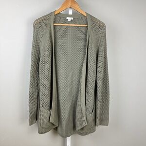 J. Jill Open Front Cardigan Sweater Womens Medium Green Open Knit Cotton Blend