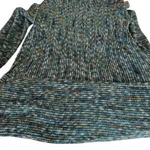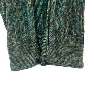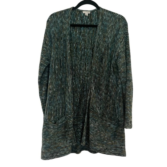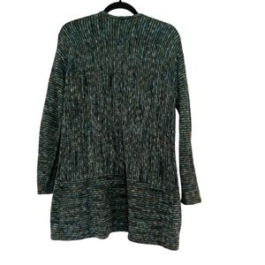 Multi colored Blue and Green Striped Knit Cardigan Sweater with 2 Pockets in Front Long Sleeves