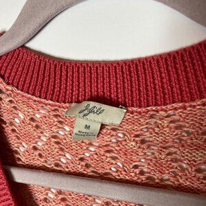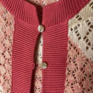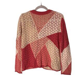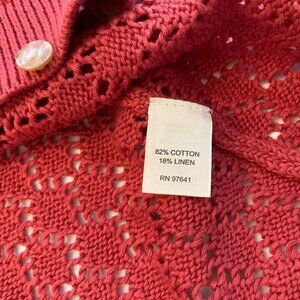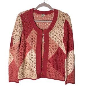 J Jill Open Loose Weave Argyle Cardigan Sweater Coral Pink Cotton Linen Sz M