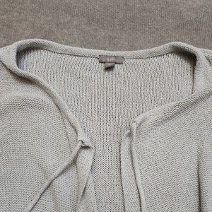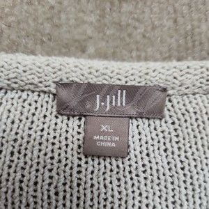 J Jill Open Tie Front Silk Cardigan Sweater Womens XL Pockets Gray 3/4 Sleeve