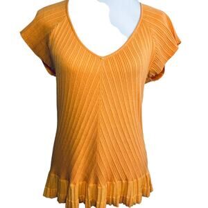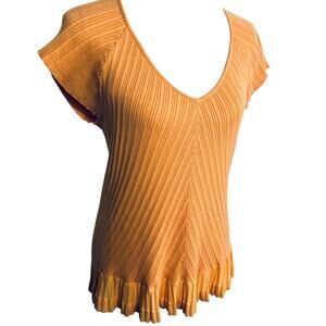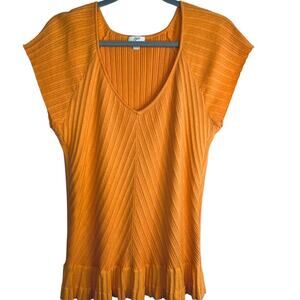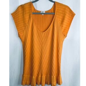 J. Jill Orange Ribbed Ruffle Edge Tee Top Blouse Large