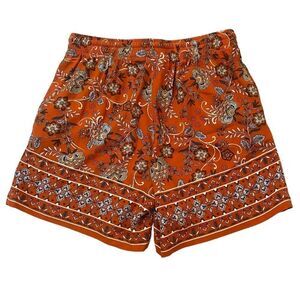 J Jill Orange Zinnia Floral Tile Print Soft Drawstring Shorts Sz XS Petite in EUC with no visible flaws
