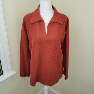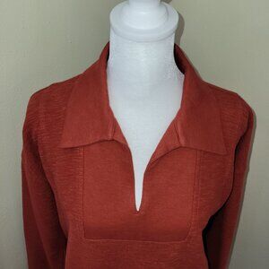 J. Jill Organic Cotton Pullover Collared Autumn Rust Top Soft & Comfy Women's S