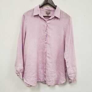 J Jill Oversized Linen Button Up Top Size M Shirt Purple Long Sleeve Pastel