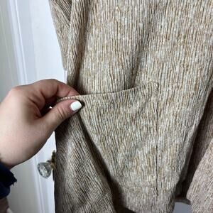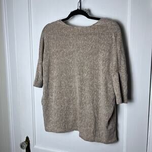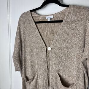 Excellent condition - no snags, holes, or stains. Light brown short sleeve oversized cardigan sweater. Single button with pockets. Boxy fit. Cotton and linen blend of fabric. Pure Jill line. Smoke free pet friendly home. All offers are welcome.
