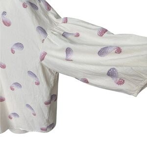 J. Jill Oversized Split-Neck Top White Blouse with Paisley Print Size XL
