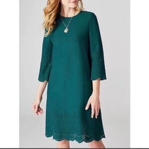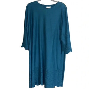 J. Jill Pacific Teal Eyelet Trimmed Cotton Dress Size Large
